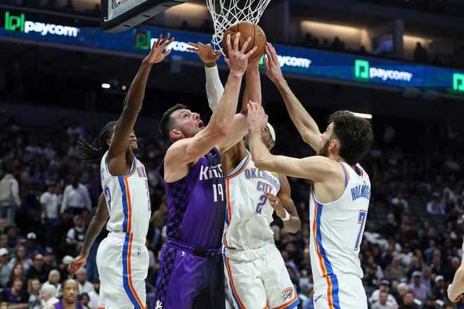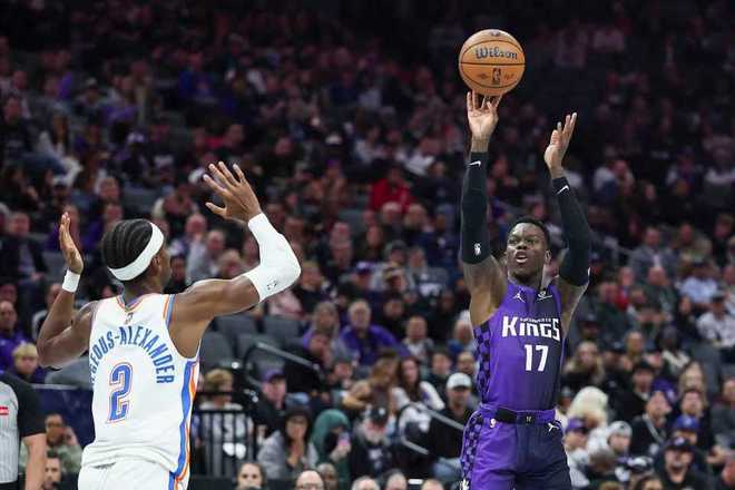 中場(chǎng)休息回來(lái),雷霆無(wú)緣連續(xù)三節(jié)得分30+,但依然用出色的攻傳表現(xiàn)壓制國(guó)王。在第三節(jié)前7分鐘雷霆被追到84-76僅領(lǐng)先8分,亞歷山大與哈爾滕施泰因連續(xù)得分,他們率領(lǐng)雷霆重新擴(kuò)大15+領(lǐng)先優(yōu)勢(shì)。雷霆單節(jié)28-27凈勝1分,三節(jié)結(jié)束雷霆擴(kuò)大98-83領(lǐng)先國(guó)王。前三節(jié)比賽,亞歷山大20中12得到30分與哈爾滕施泰因14中12高效得到28+15,引領(lǐng)雷霆4人得分上雙,威少4記三分21+6+8與德羅贊18分,引領(lǐng)國(guó)王4人得分15+。